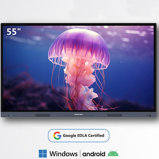 Écran Interactif 55 POUCES Tactile Google EDLA Certified ROM 128GB RAM 8GB. Démarrage rapide et changement de système d'exploitation d'application plus rapide Réponse tactile ultra-rapide & précise 50 points Touch Durée de vie 100 000 heures HDMI-Out, USB-C(15W), Google EDLA Certified (CDX-55i Specktron)